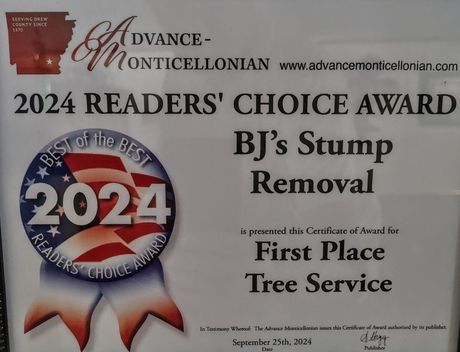 BJ's Stump Removal Received the 2024 Reader's Choice Award placing #1 in Tree Service!